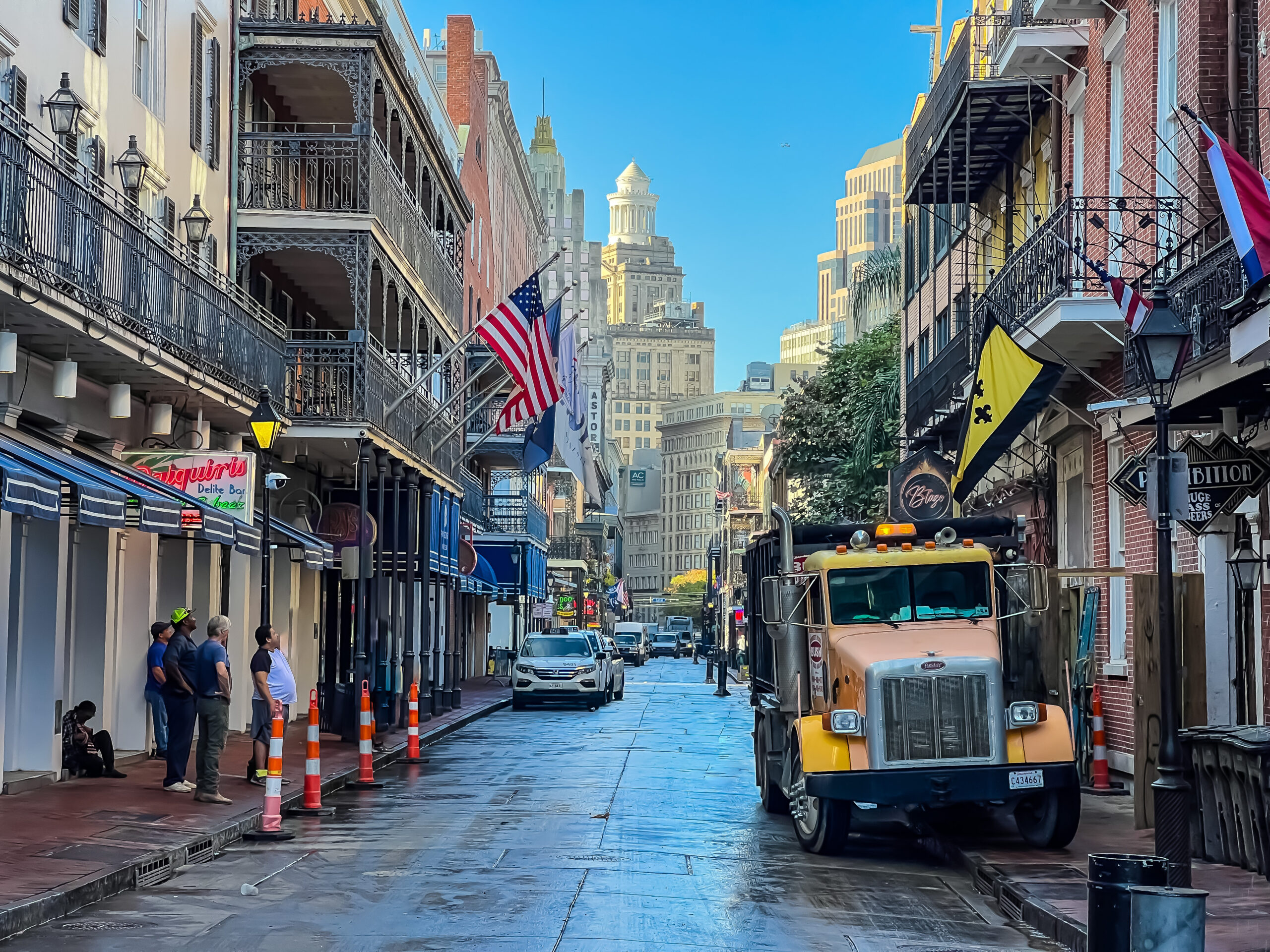 - Bourbon Street: La calle que nunca duerme. Ambiente animado y desenfadado donde se encuentran la mayoría de pubs, bares, discotecas y locales con música en vivo sin perder el ambiente encantador de este barrio. De día hay ambiente, pero es de noche cuando la visita se convierte en obligada. Ampliamos información más adelante.